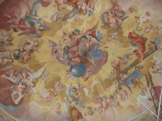 Die Kalvarienberg-Anlage - 348 bis 372m - ließ Maria Barbara von Mollin in den Jahren 1728 bis 1732 erbauen. Kalvarienberg-Kapelle "Maria im Elend" 348 m. Die Fassade weist Doppelpilaster und einen Volutengiebel auf. Im hölzernen Dachreiter, mit Ziegeln ausgemauert und mit einem mit Kupferblech gedeckten Zwiebeldach ausgestattet, hängen zwei Bronzeglocken. Das 180cm mal 320cm große Altarbild zeigt den Abschied Jesu von seiner Mutter. Der Platz darunter birgt ein „Heiliges Grab“ mit der Figur des vom Kreuz abgenommenen Christus. Acht Passionsbilder des "Josephinischen Kreuzwegs" sind an den Wänden angeordnet.