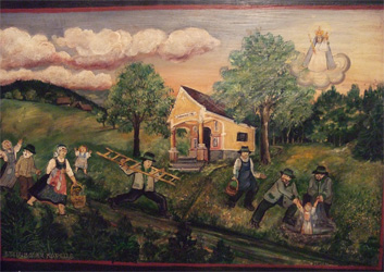 Dass eine "Frau im Schneesturm erstickt" oder "beim Schöpfbrunnen des Hauses ein Kind ertrunken" sei, wird als Grund für die Errichtung der Kapelle im Jahre 1828 angegeben. Ein Votivbild im Altarraum mit der Darstellung der Errettung eines Mädchens aus einem Brunnen bestätigt die zweite Erzählvariante. Über fünf Stufen aus Stainzerplatten erreicht man die auf Säulen gestützte Laube mit flacher Decke. Der Schrift an der Giebelseite: "Hl.Maria Rein bitte für uns!" entnehmen wir, wem sie geweiht ist. Ob es neben der Dekormalerei an der Eingangsfront auch Bilddarstellungen gab, lässt sich nicht mehr feststellen. In die Seitenwände ist je ein Fenster gesetzt, das eternitgedeckte Dach über der Apsis abgewalmt. Eine Eisengittertüre verschließt den Kapellenraum. Dieser weist ein Tonnengewölbe mit Stichkappen und einen gemauerten und marmorierten Altar auf. Auf ihm thront eine Maria Immaculata, davor ist ein Kruzifix gestellt. Die Nischen in den Seitenwänden sind bemalt, links mit einem Bild der Hl.Katharina, rechts mit dem des Hl Nepomuk. In den Sommermonaten kommt man hier noch jeden ersten Sonntag im Monat zum Rosenkranzbeten zusammen, doch die österliche Speisensegnung findet nicht mehr statt. (Quelle: Winfried Bräunlich - Dr. Dieter Weiss: Zeichen am Weg, Stainz, 2009)